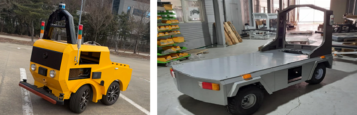철도물류로봇은 철도차량기지에서 자재 및 공구를 무인자율로 운반하는 장비로 신속하고 정확한 이송 뿐만 아니라 정비사의 작업도 지원가능한 로봇입니다. 본 장비와 기존의 물류로봇과의 차이는 안전 Driver로, 고정물체와 사람을 딥러닝 기반의 인식으로 차별화하여 안전을 추구하는 기능입니다. 본 장비는 GPS 난청 지역이 많은 외부공간에서 LTE 통신을 기반으로 구축된 DGPS와 MEMS IMU기반의 복합항법과 차선 및 사전지도가 없는 실내외에서 SLAM(Simultaneous Localization and Mapping)을 기반으로 항법으로 자율주행 하게 됩니다.자율주행차량은 기본적으로 원격주행도 가능하며 필요시 배터리 등의 절약을 위하여 대기모드로도 운용되어 에너지를 절약하면서 운용 가능합니다.(구성)본 장비는 6개의 라이다와 6개의 카메라 센서로 구성되어 있으며 철도차량기지의 경물류 및 경정비 단계의 자재 및 공구 등을 이송하고 정비 검수고에서는 정비사가 로봇에 내장된 자체 컴퓨터 및 모니터를 통해 정비매뉴얼을 활용하는 등 물류의 이송 및 정비 지원의 역할을 수행하는 철도 정비지원용 혹은 공장용 무인운송기능을 담당하는 물류로봇입니다.